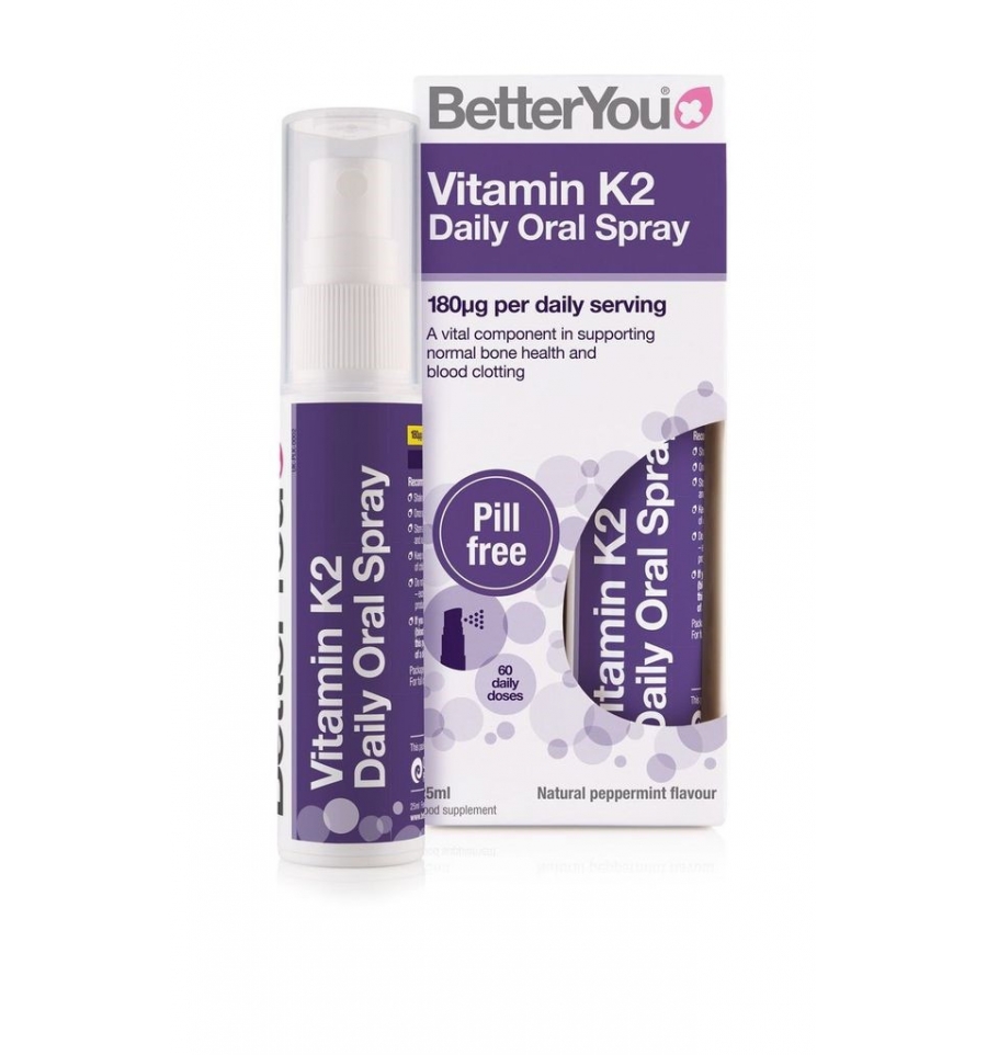 BetterYou Vitamin K2 Oral Spray is an optimal strength daily vitamin K2 supplement. This unique formulation provides fast and effective absorption of this vital nutrient, supporting normal blood clotting and bone health.