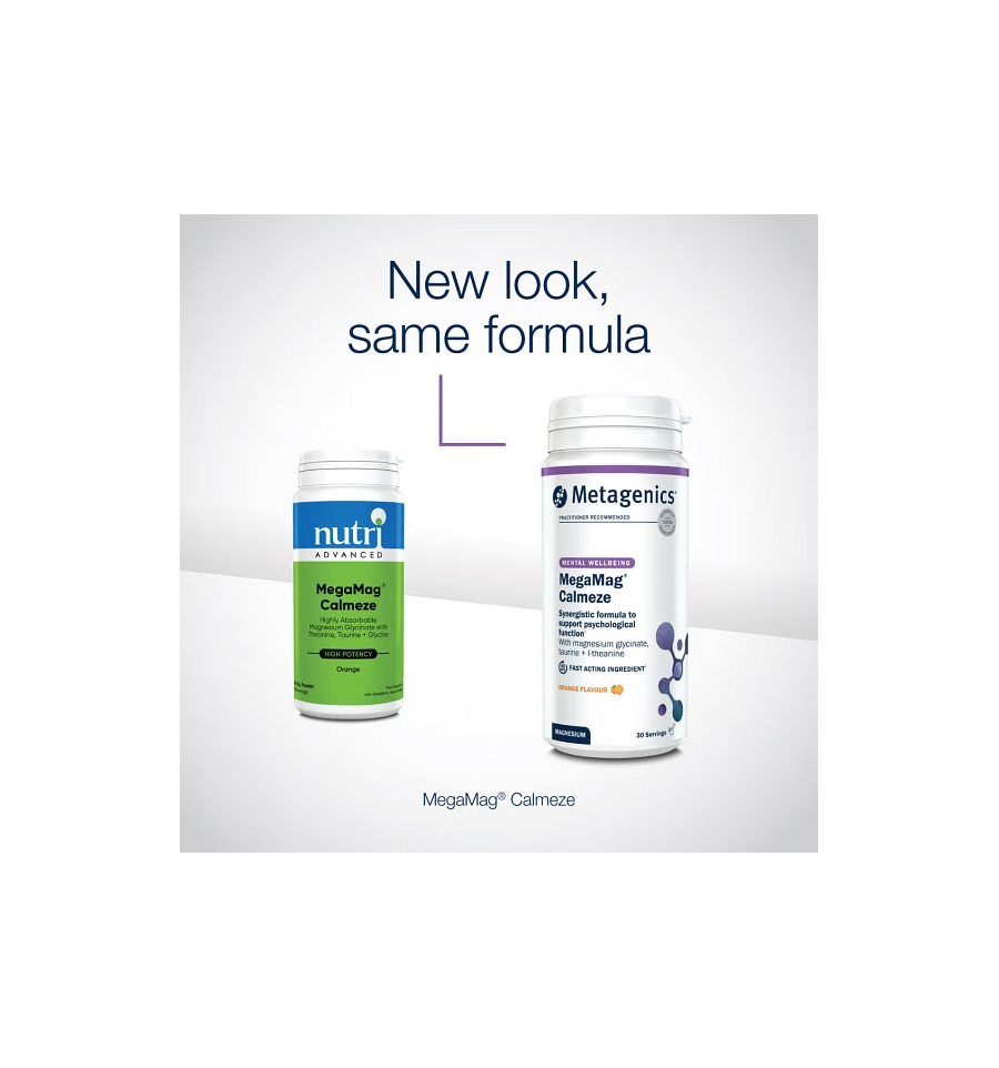 Our trusted daily MegaMag® Calmeze, same expert formula, now with a brand new look!