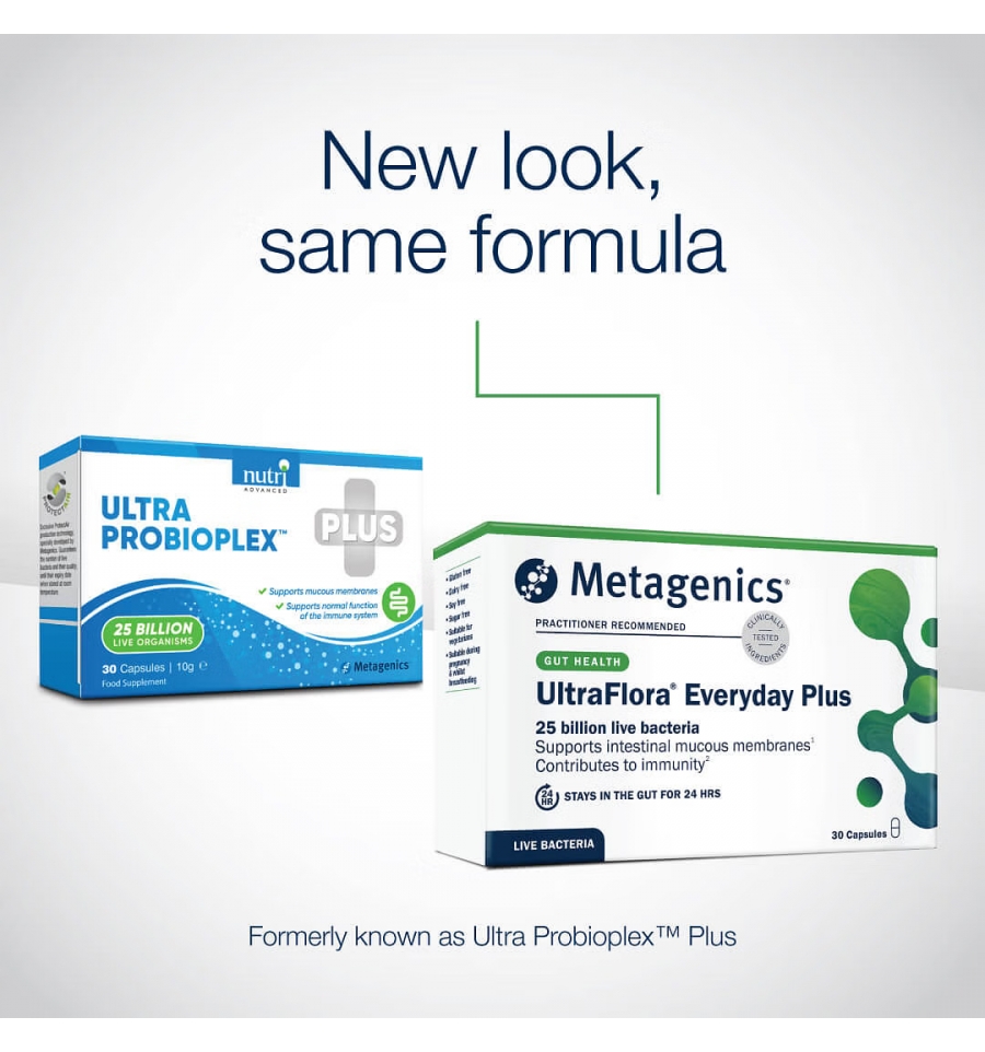 Ultra Probioplex™ Plus is back with fresh new packaging. This high-strength probiotic remains a staple for everyday wellness, now in updated packaging that’s as reliable as the product inside.